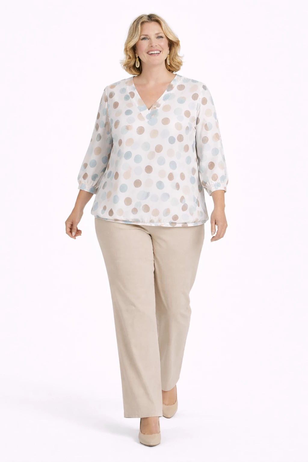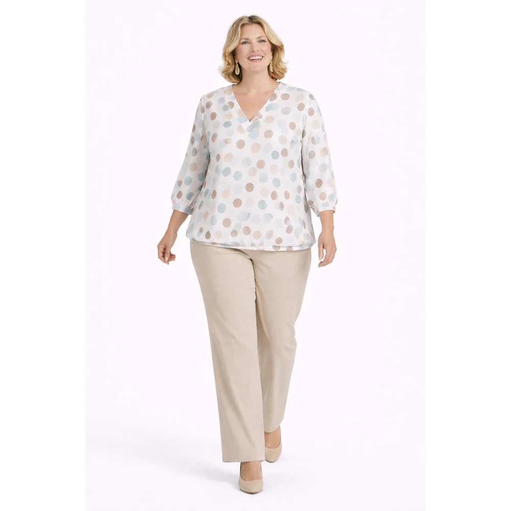 V -nyak kivágással előnyösen nyújtja az alakot. Ujja hosszú ujj.