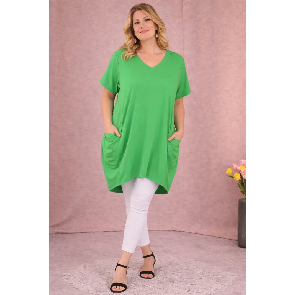 Kellemes viseletű, rugalmas pamut anyagból készült, igazi hagyma fazonú nyári tunika.