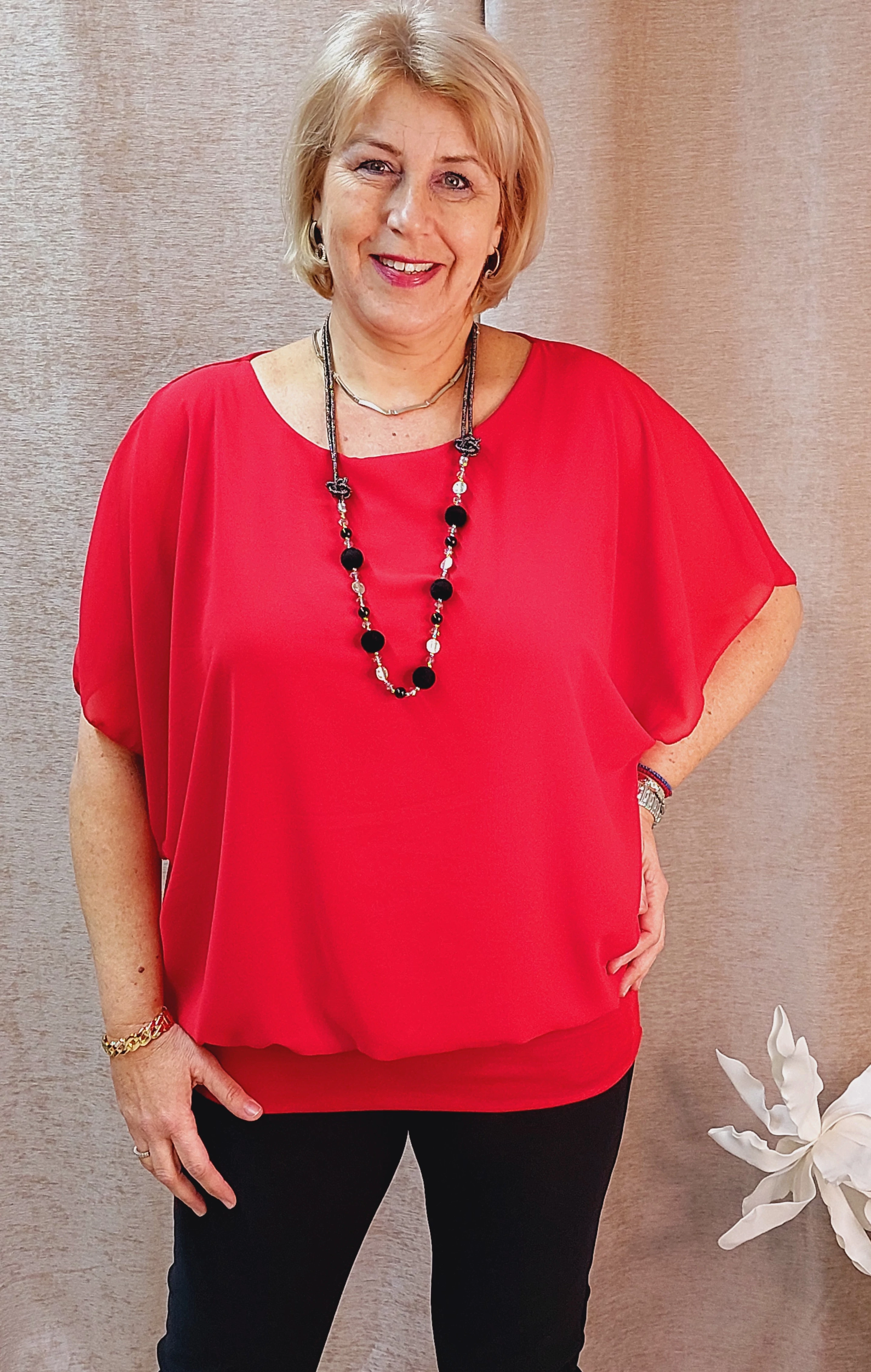 Olaszországból származó, enyhe vasalást igénylő csodás jól variálható felső.