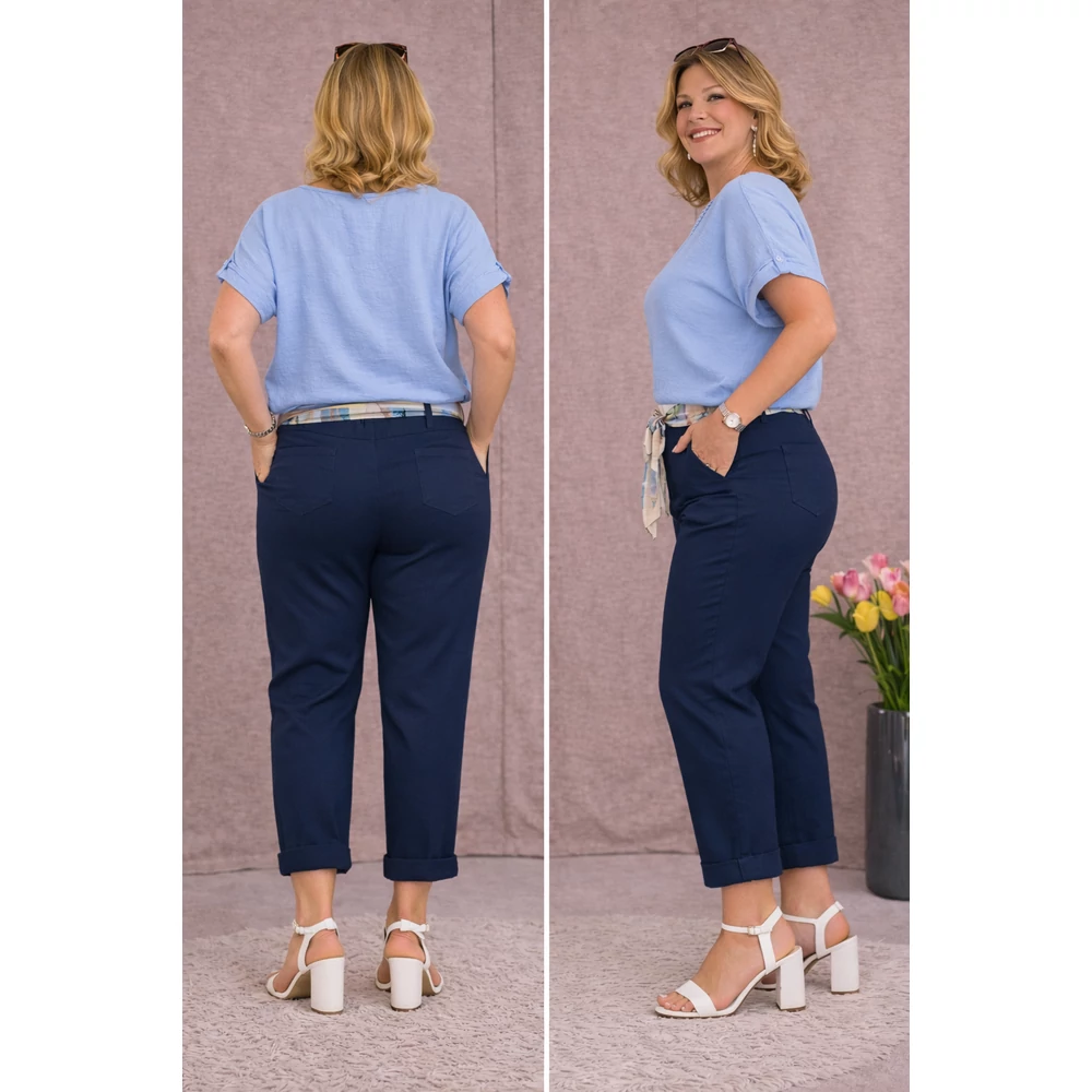 A nadrág a fazonja miatt felhajtva halásznadrágnak és lehajtva elegánsan sportos nadrágként is viselhető.