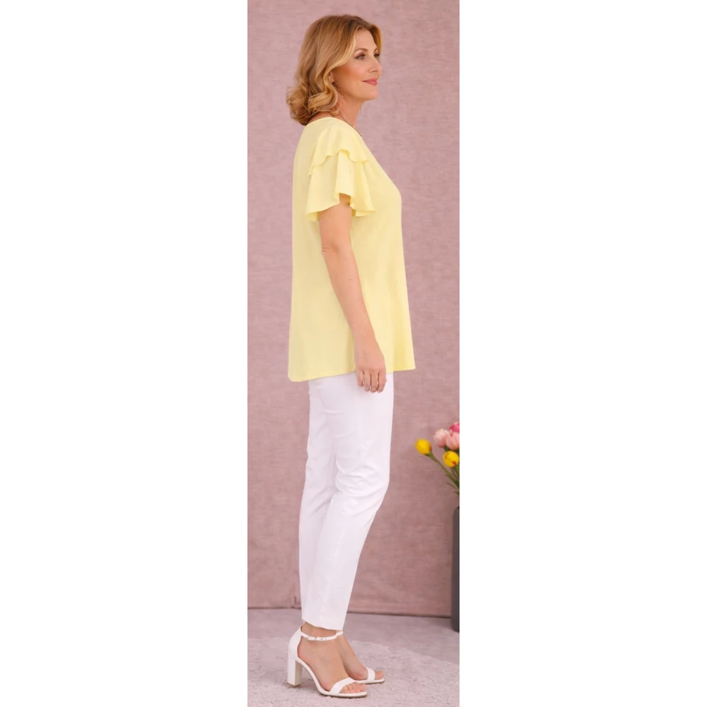 Kellemes viseletű, lágy esésű, organikus viszkóz anyagból készült, csinos nyári blúz divatos pillangó ujjakkal.