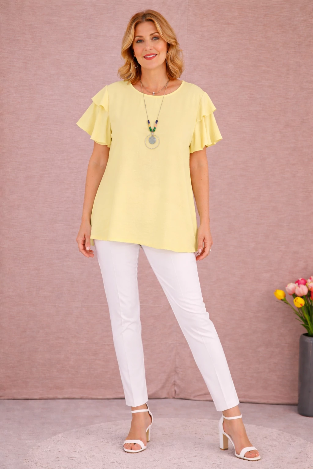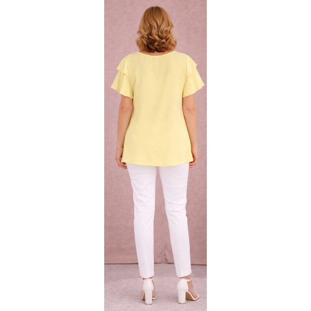 Dupla pillangó ujjas blúz - SÁRGA- 48-54 méret
