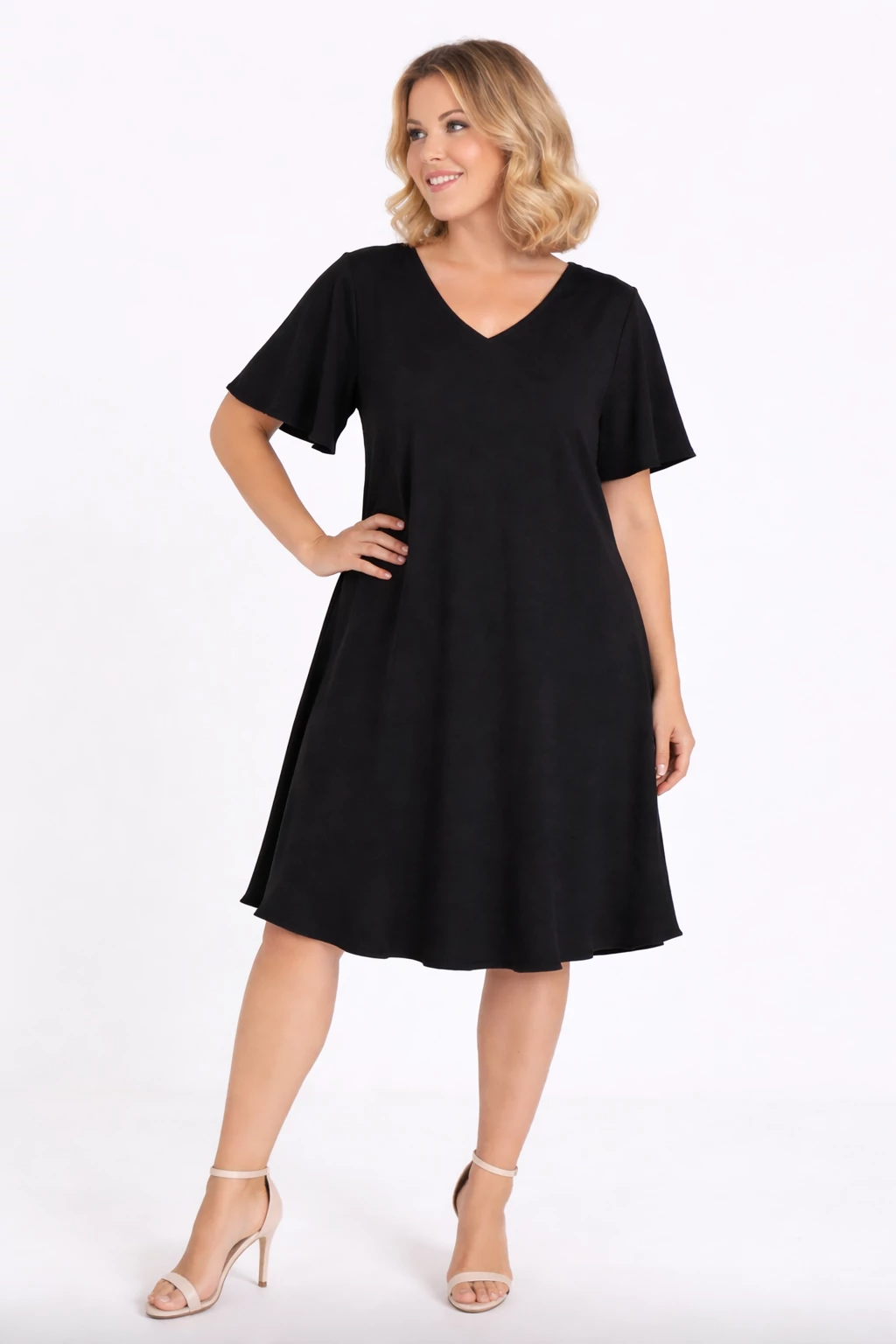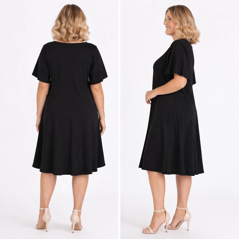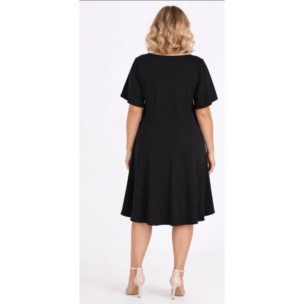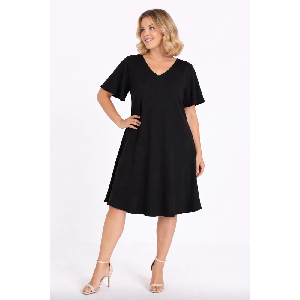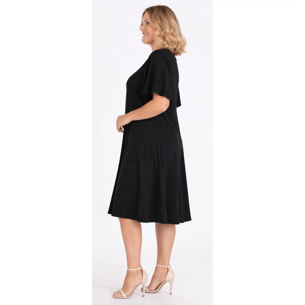 A sokak által méltán kedvelt, organikus viszkóz anyagból készült - nem izzadós, antiallergén, szellős - kellemes viseletű, kerek nyakmegoldású, pillangó ujjas, karcsúsított szabásvonalú, ívelt, harang szoknyás.