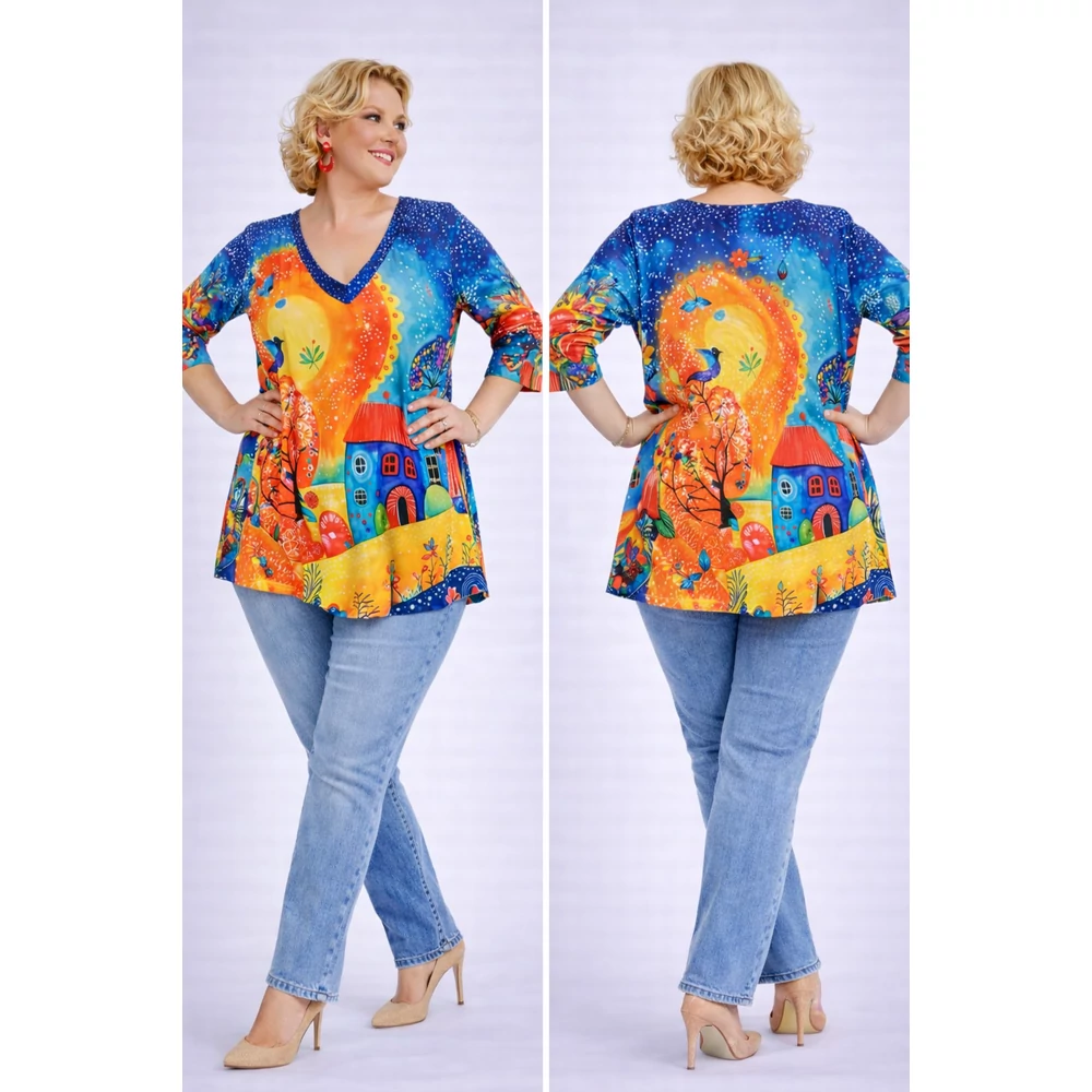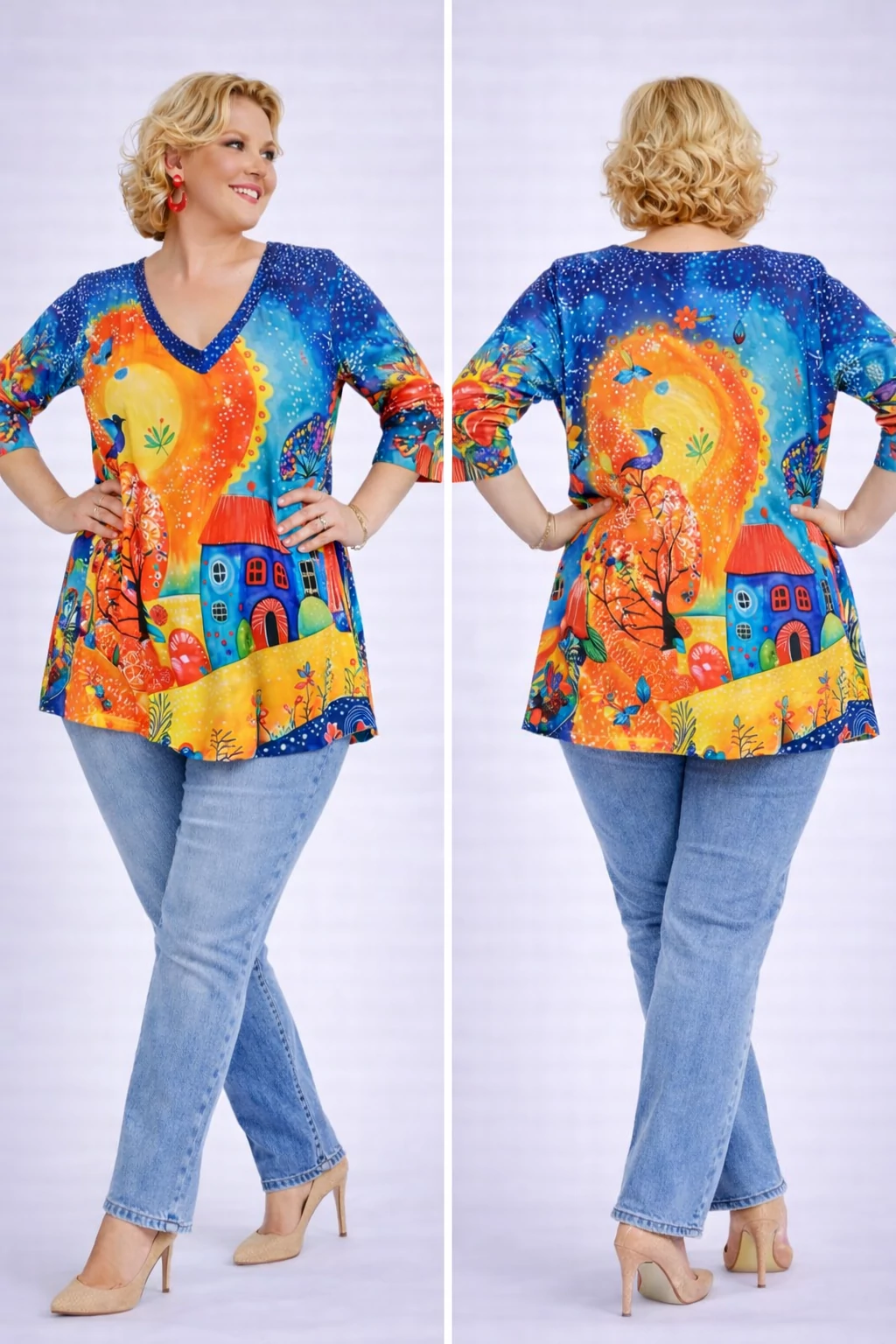 Selyempamut anyagból készült, lefelé bővülő V nyakú felső vagy tunika.