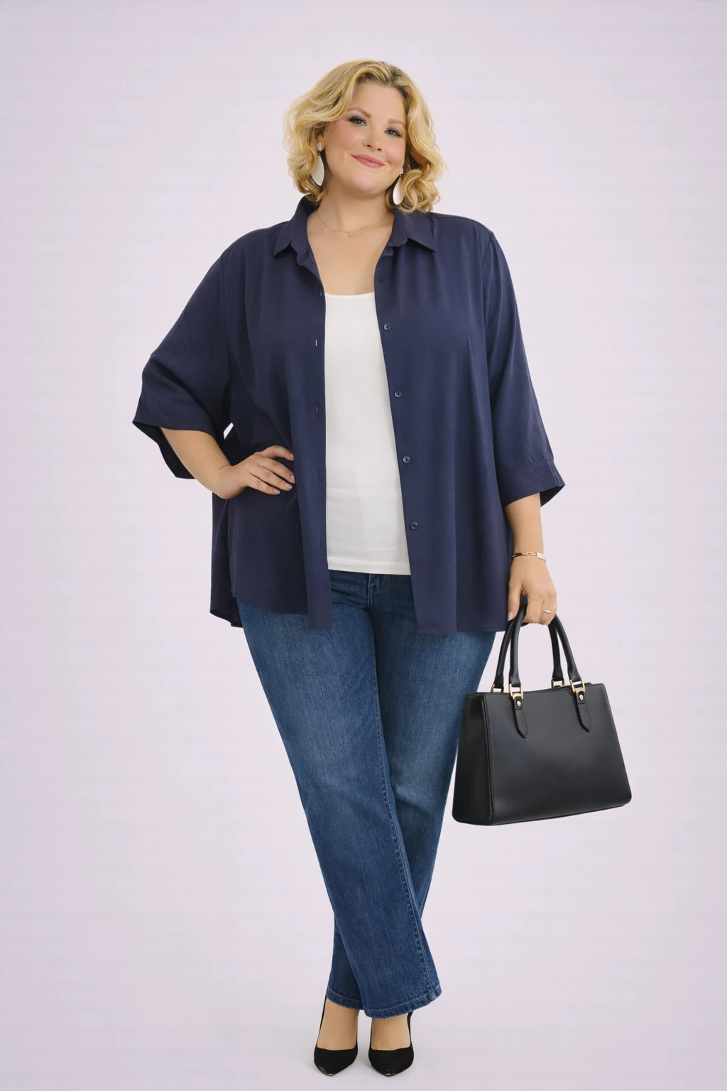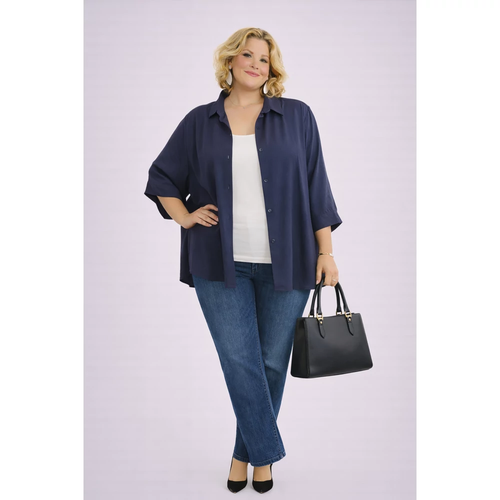 Organikus viszkóz anyagból készül, ing galléros ragyogó színű alkalmi blúz.