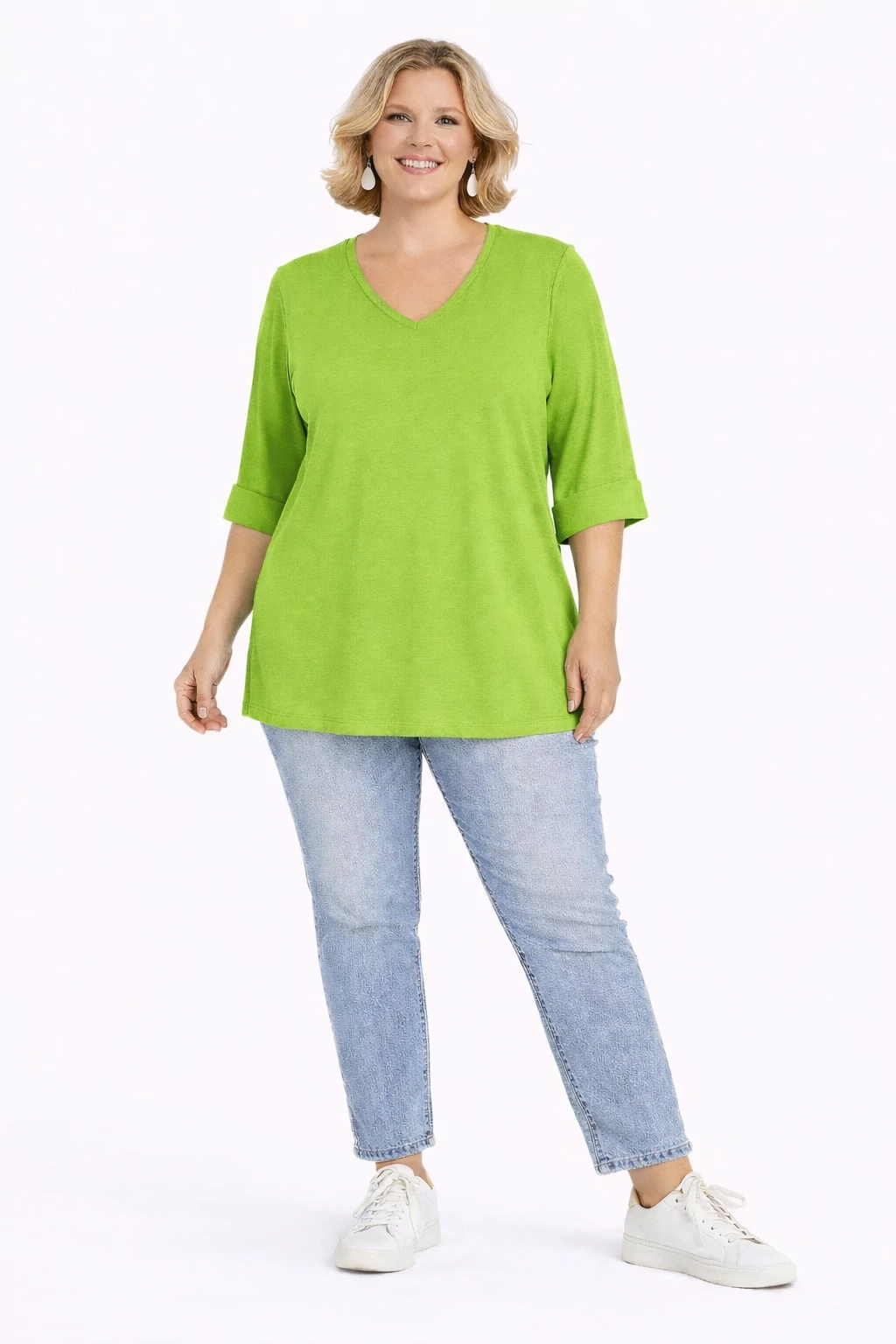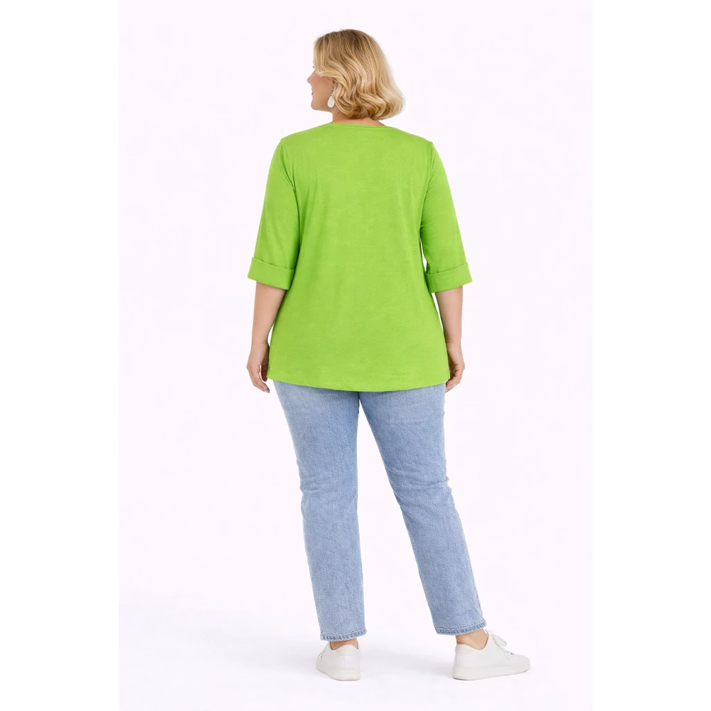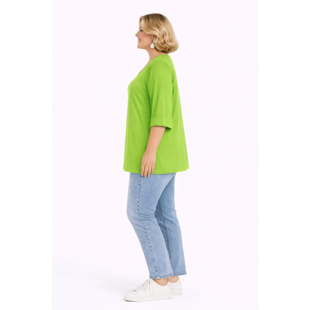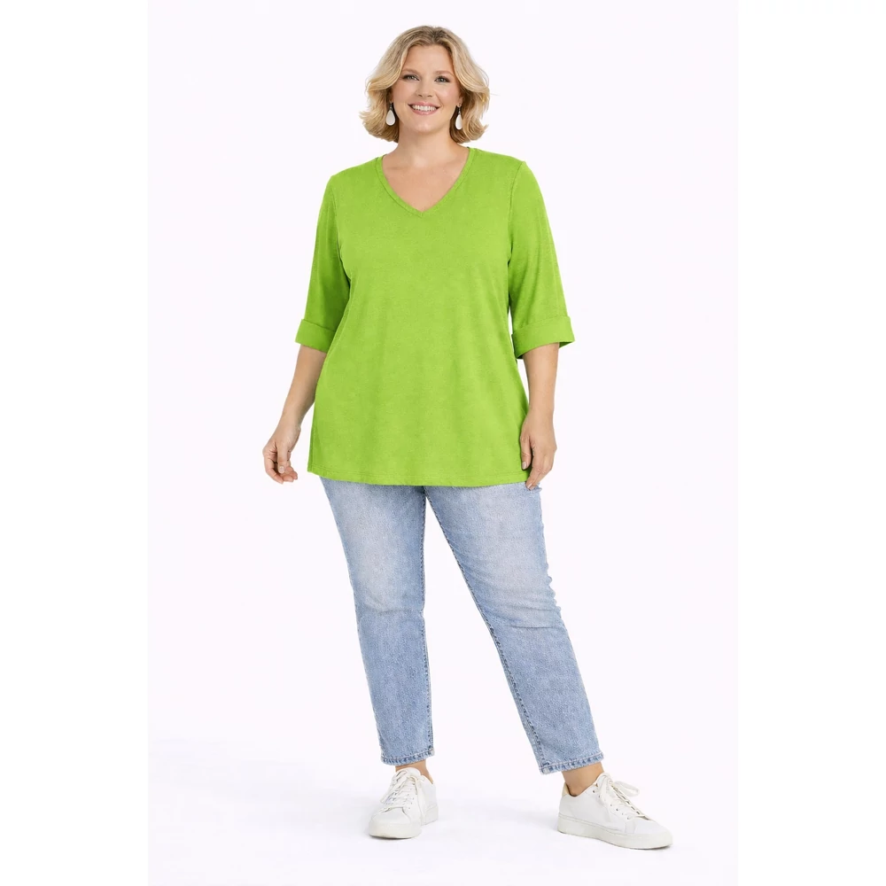 Ujján, alján passzés V nyakú pamut felső - KIVI- 48-54 méret