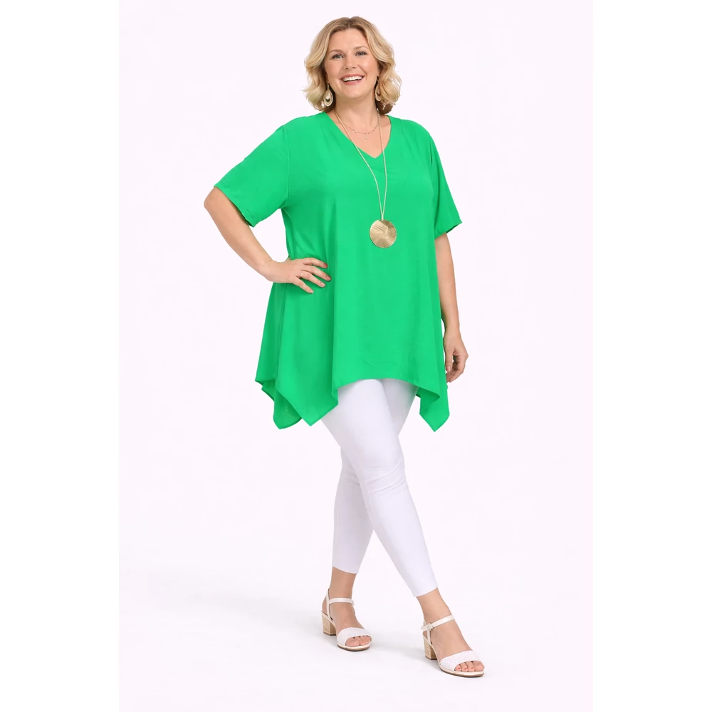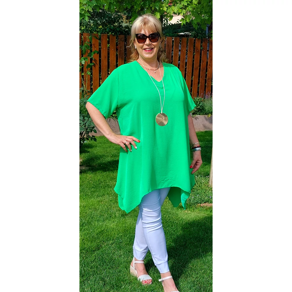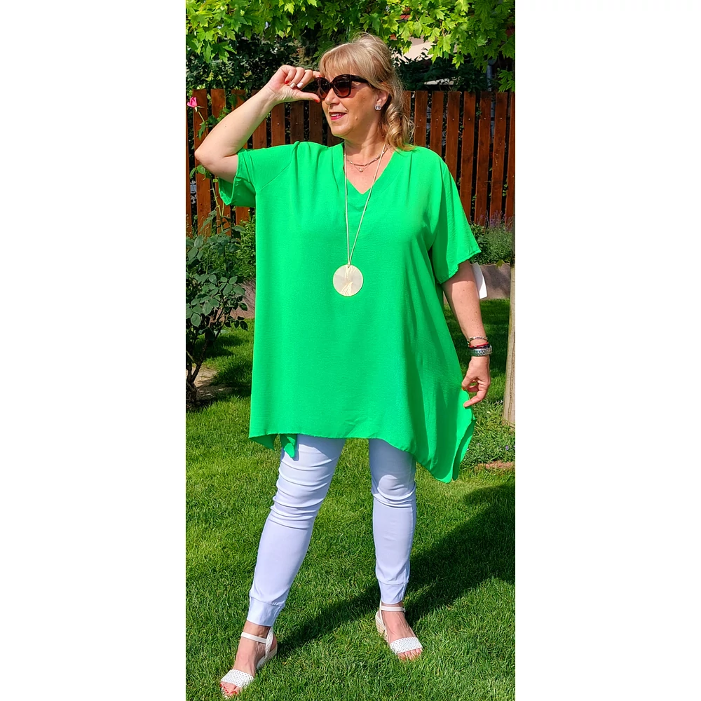 A sokak által kedvelt, organikus viszkóz anyagból készült V nyakas blúz, nem hiányozhat egy igényes nő nyári gardróbjából.
