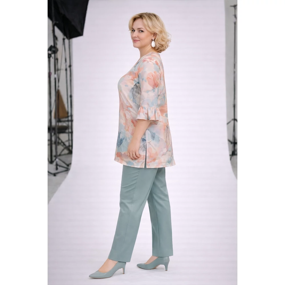 Praktikus V-nyak kivágású, oldalt sliccelt könnyed alkalmi blúz.