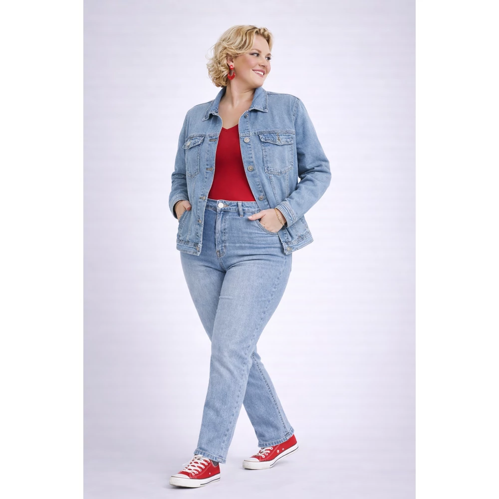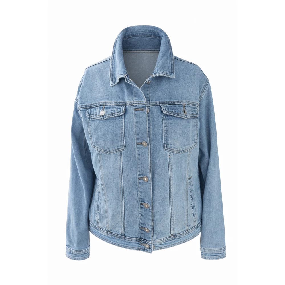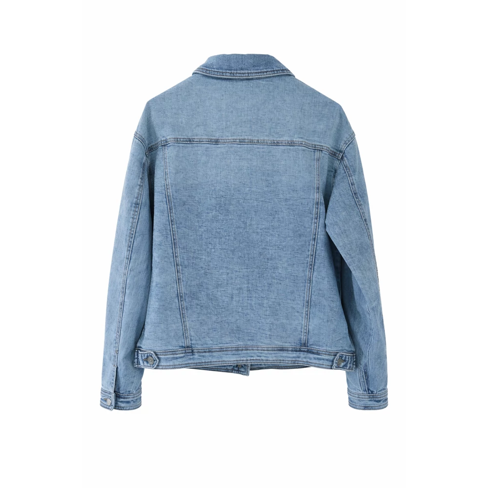 Elöl végig fémgombos, karcsúsított szabásvonalú, oldalain zsebes,alján körbe vékony passzés, hosszú ujjú, elején rávarrt zsebekkel, hagyományos inggallérral.